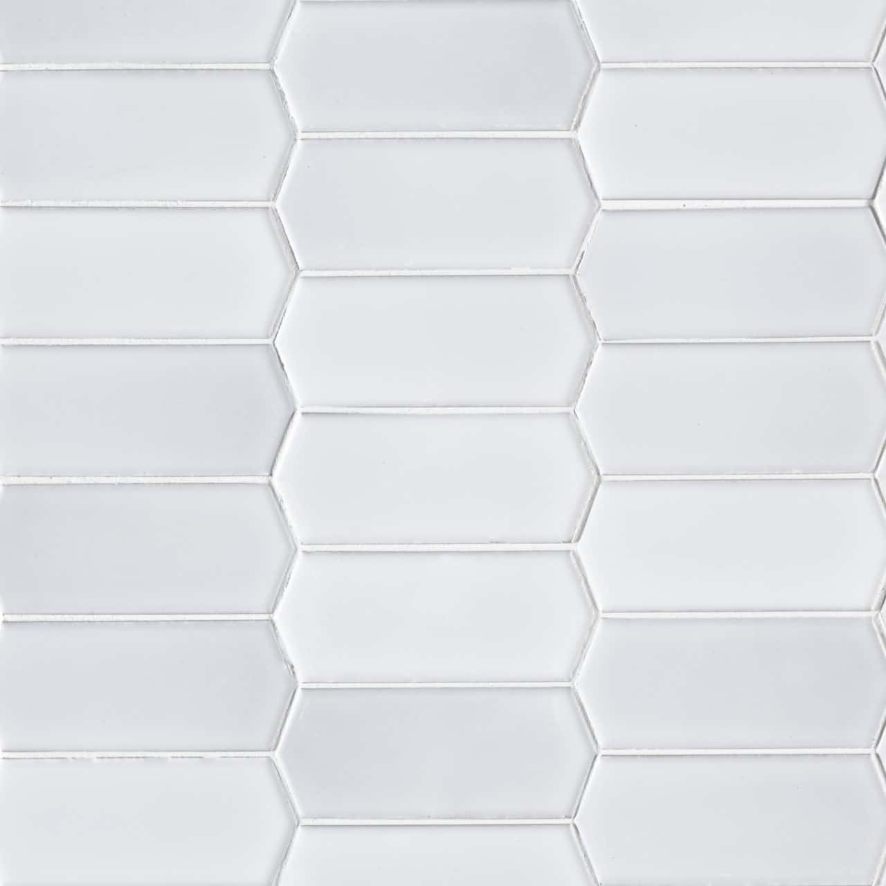 These beautiful porcelain tiles feature a charming picket fence shape, in a timeless glossy white. Our Retro Picket Bianco tiles can be installed in either direction, depending on the look that you want. For added contrast, and to give this unique pattern more dimension, use colored grout to match other features in the design.