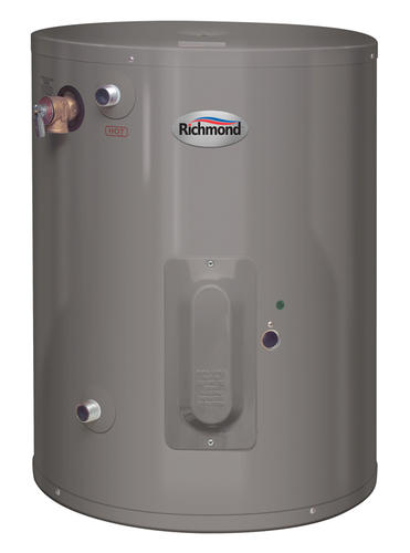 - The Richmond 10-Gallon Electric Point-of-Use Water Heater comes with a 2-Year In Home Labor Warranty and has a compact design that can provide an adequate supply of hot water for a single application. The heater includes a 2,000-watt element and a factory installed temperature and pressure relief valve. The heater can be mounted on a wall for convenient installation.